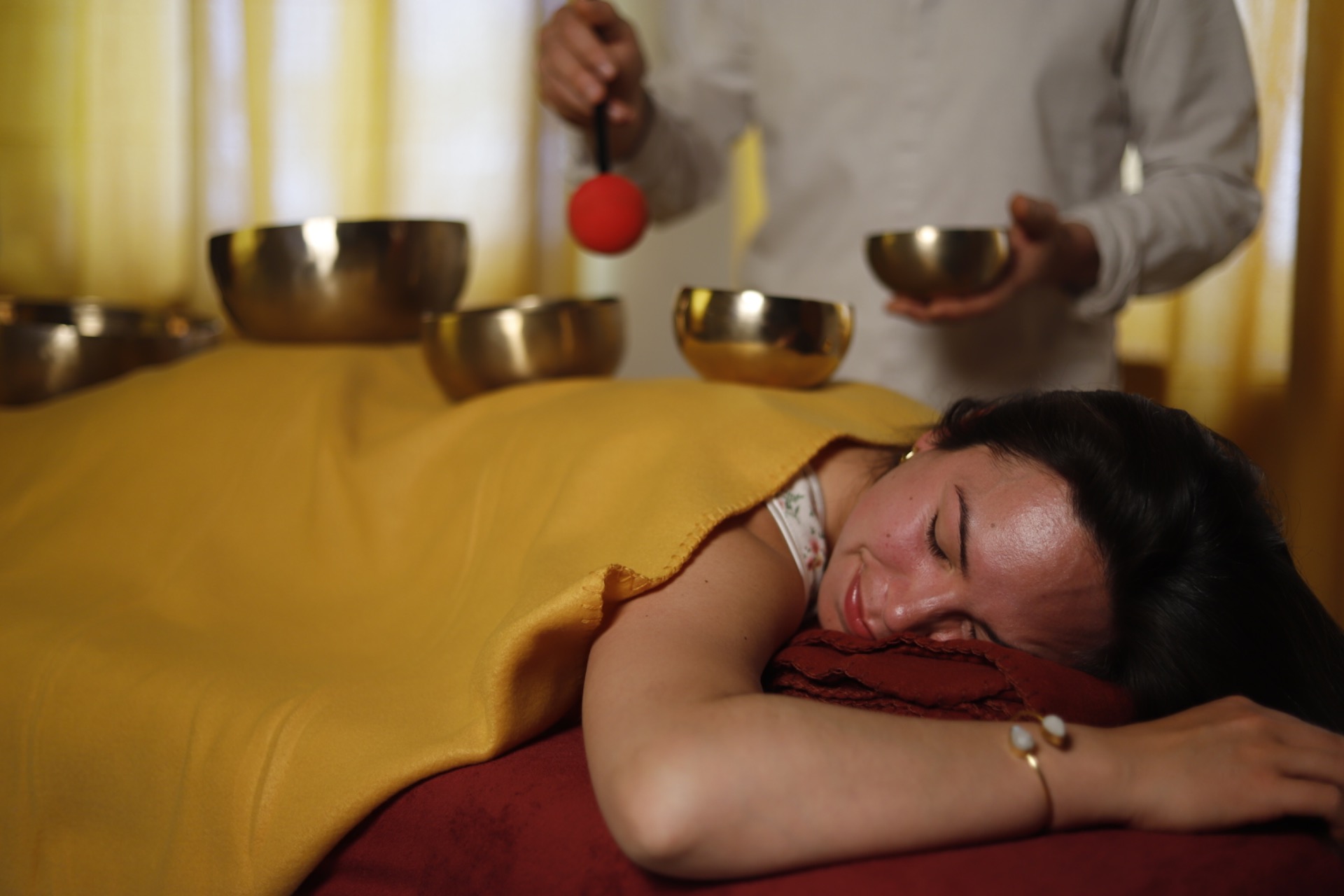 Bei einer Klangmassage werden Klangschalen auf und um dem Körper positioniert und sanft angespielt. Ihre feinen Vibrationen breiten sich wie Wellen im gesamten Körper aus und führen in einen Zustand tiefer Entspannung und innerer Harmonie.