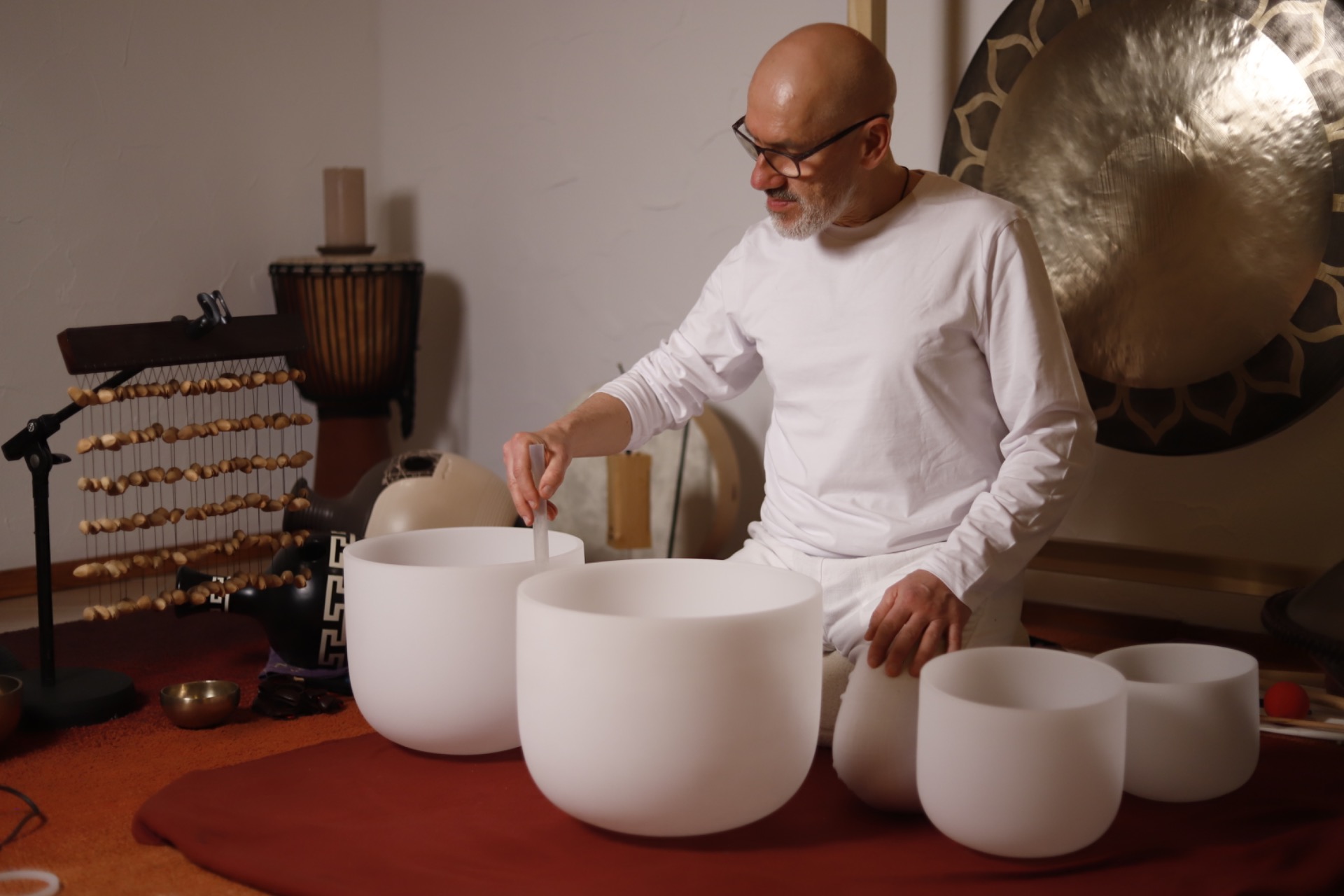 Kristallklangschalen aus reinem Quarz erzeugen klare, lichtvolle Töne. Ihre feinen Schwingungen breiten sich im Raum und im Körper aus und können Ruhe, Weite und innere Klarheit entstehen lassen.