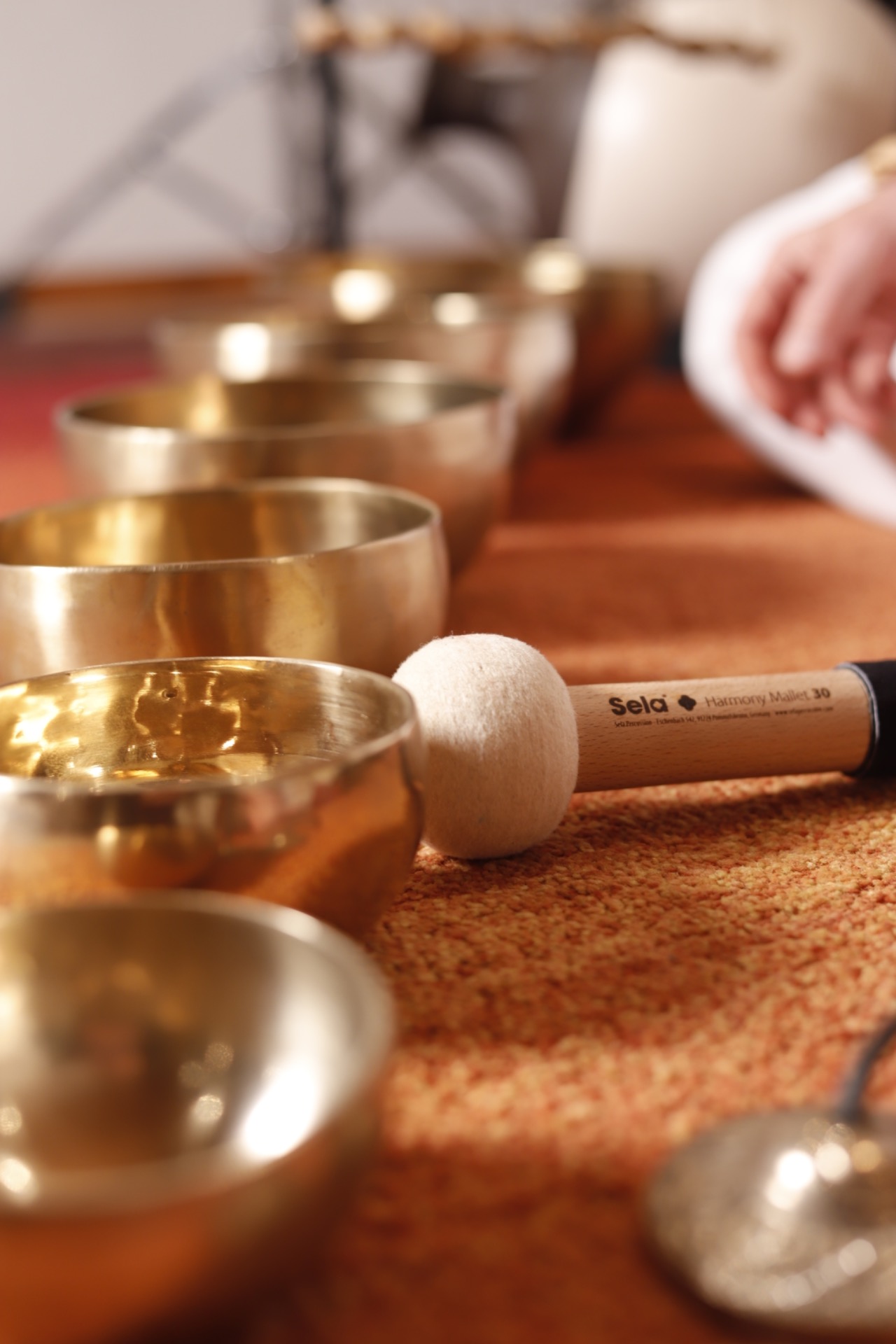 Geschmiedete Klangschalen aus dem Himalaya-Raum entfalten warme, obertonreiche Klänge. Ihre sanften Schwingungen laden zur Entspannung ein und können – auf oder nahe am Körper gespielt – tief spürbar sein.