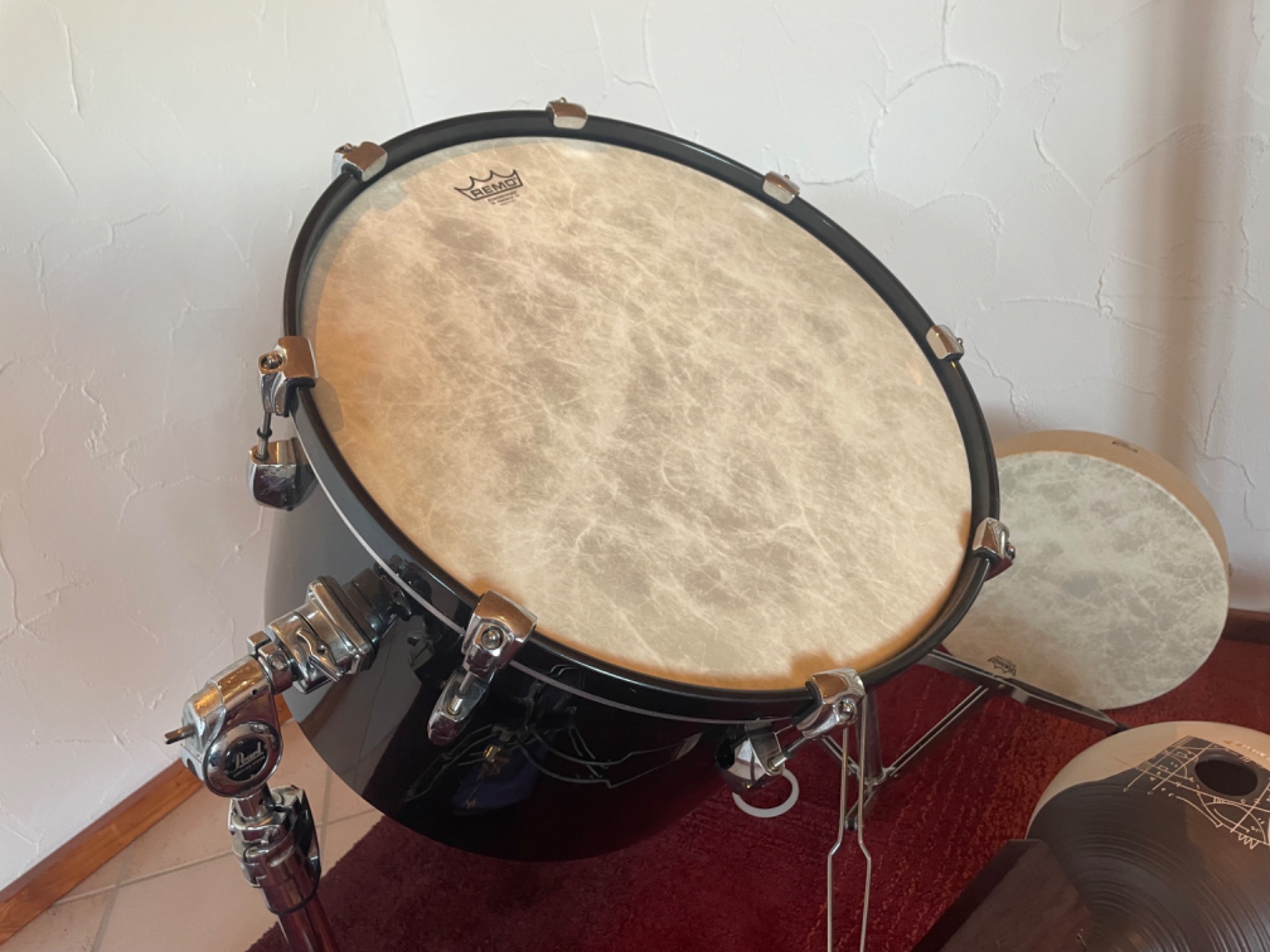Die Gong Tom ist eine große, tiefe Trommel mit warmem, kraftvollem Klang. Ihre Schwingungen sind besonders im Bauchraum spürbar und geben Klangreisen eine erdende Tiefe.